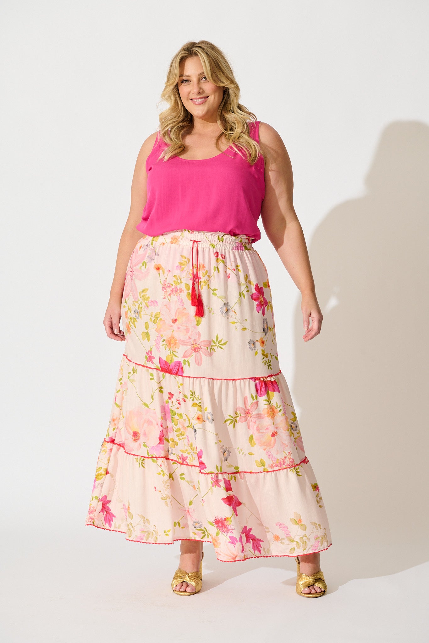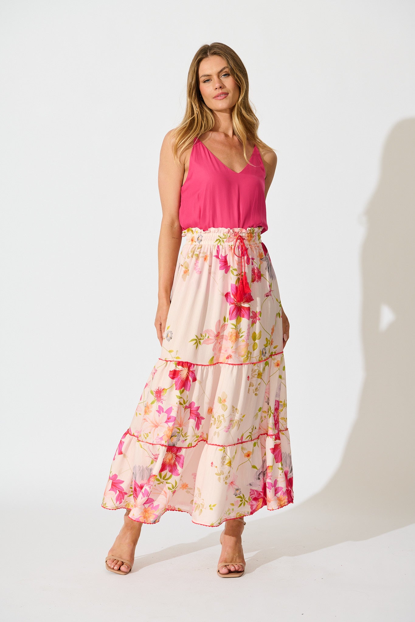 Crafted from a lightweight, breathable rayon, this non-stretch skirt floats gently over the body with a flattering A-line shape and tiered skirting for a touch of movement. The encased elasticised waist and functional drawstring with tassel tie offer a comfortable and adjustable fit, making it ideal for all-day wear.