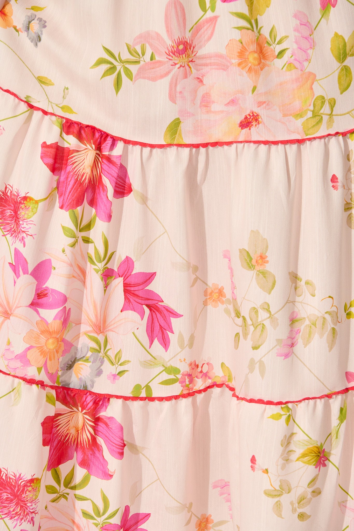 - Maxi length with tiered skirting for graceful movement