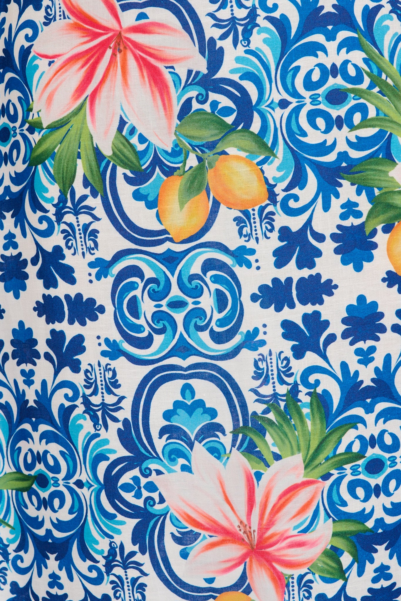 Blue Multi Tiles Print Linen Blend