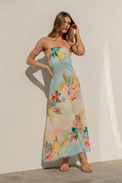 Summer Sky Maxi Dress in Multi Tropical Floral Print